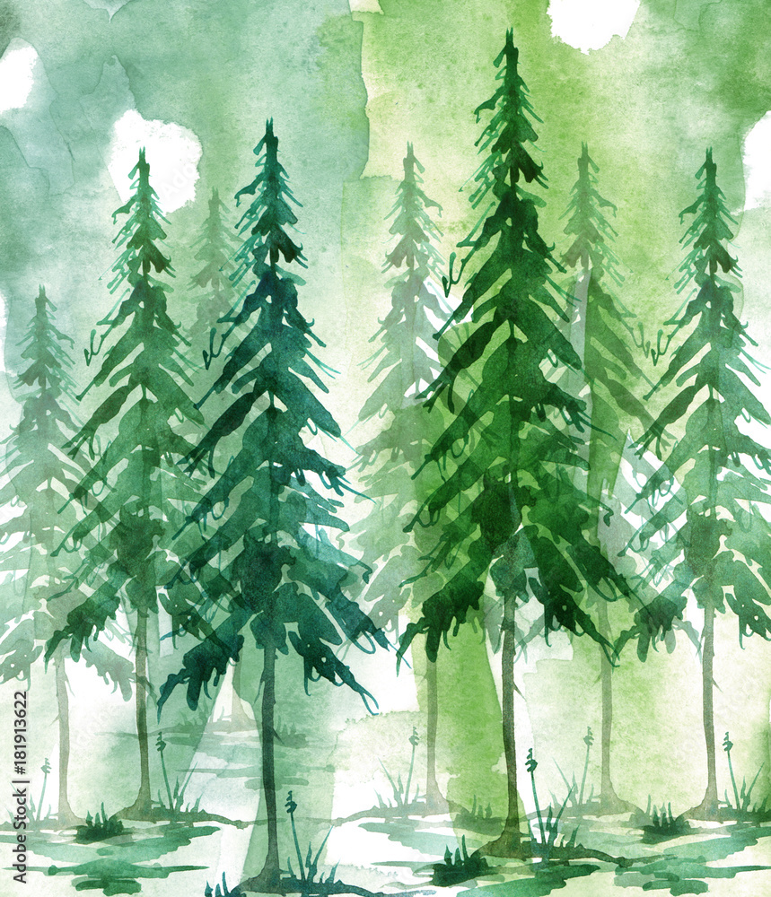 Ilustracja Akwarela Rysunek Lasu Sosny Swierku Cedru Ciemny