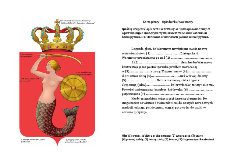 Syrenka Warszawska Herb Warszawy Kolorowanka